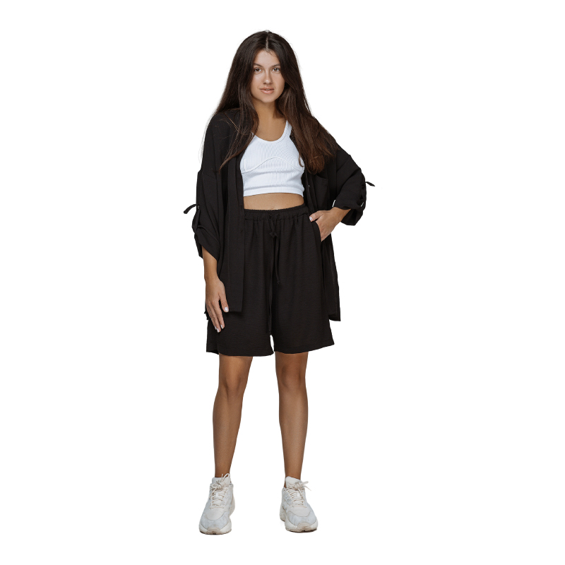 Дуже зручні та легкі шорти на кожен день. Мають регулювання талії на поясі, а також зручні кишені. Можна придбати в комплекті з костюмом СОРОЧКА&ШТАНИ.