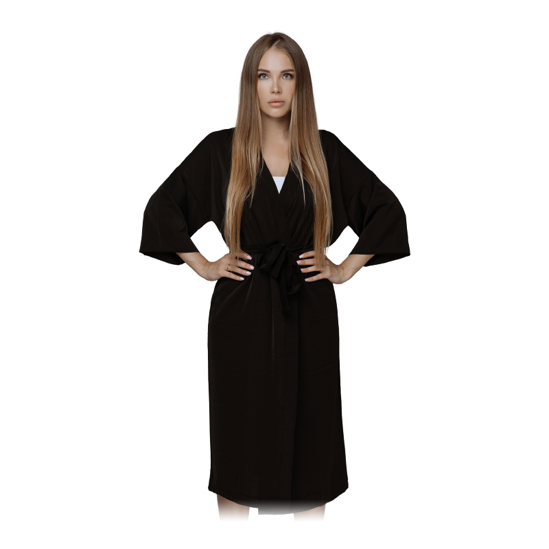 Кімоно не фарбується і не освітлюється порошком. На спині вишитий логотип нашого бренду “Viart”. Просто переодягніть клієнта в нього перед процедурою і забудьте про плями на одязі. Також чорний колір кімоно допоможе вам зробити найстильніші фотографії своїх робіт без спотворення відтінку, адже блондинки виглядають найкраще на чорному тлі.